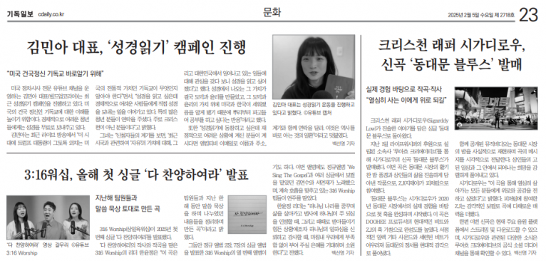 [기사] 3:16워십, 올해 첫 싱글 ‘다 찬양하여라’ 발표(기독일보)