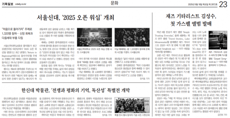 뮤직타임 [기사] 재즈 기타리스트 김성수, 첫 가스펠 앨범 발매(기독일보)