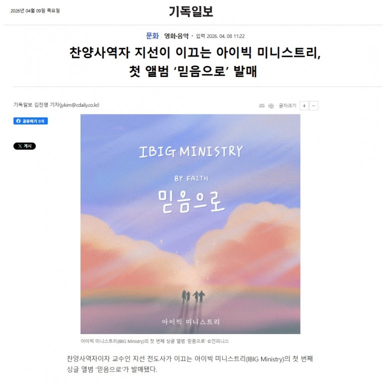 [기사] 찬양사역자 지선이 이끄는 아이빅 미니스트리, 첫 앨범 ‘믿음으로’ 발매(기독일보)