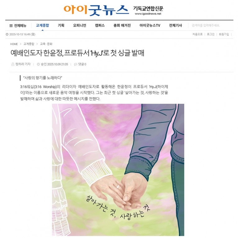 [기사] 예배인도자 한윤정, 프로듀서 ‘Hy.J’로 첫 싱글 발매(아이굿뉴스 기독교연합신문)